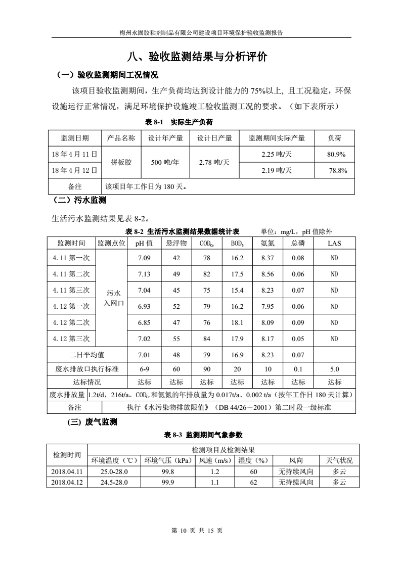 梅州永固粘結(jié)劑制品有限公司建設(shè)項目竣工環(huán)境保護驗收監(jiān)測報告