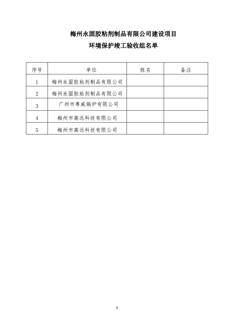 梅州永固粘結(jié)劑制品有限公司建設(shè)項目竣工環(huán)境保護(hù)驗收意見
