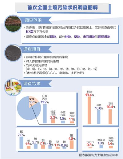 全國(guó)土壤點(diǎn)位超標(biāo)率為16.1%